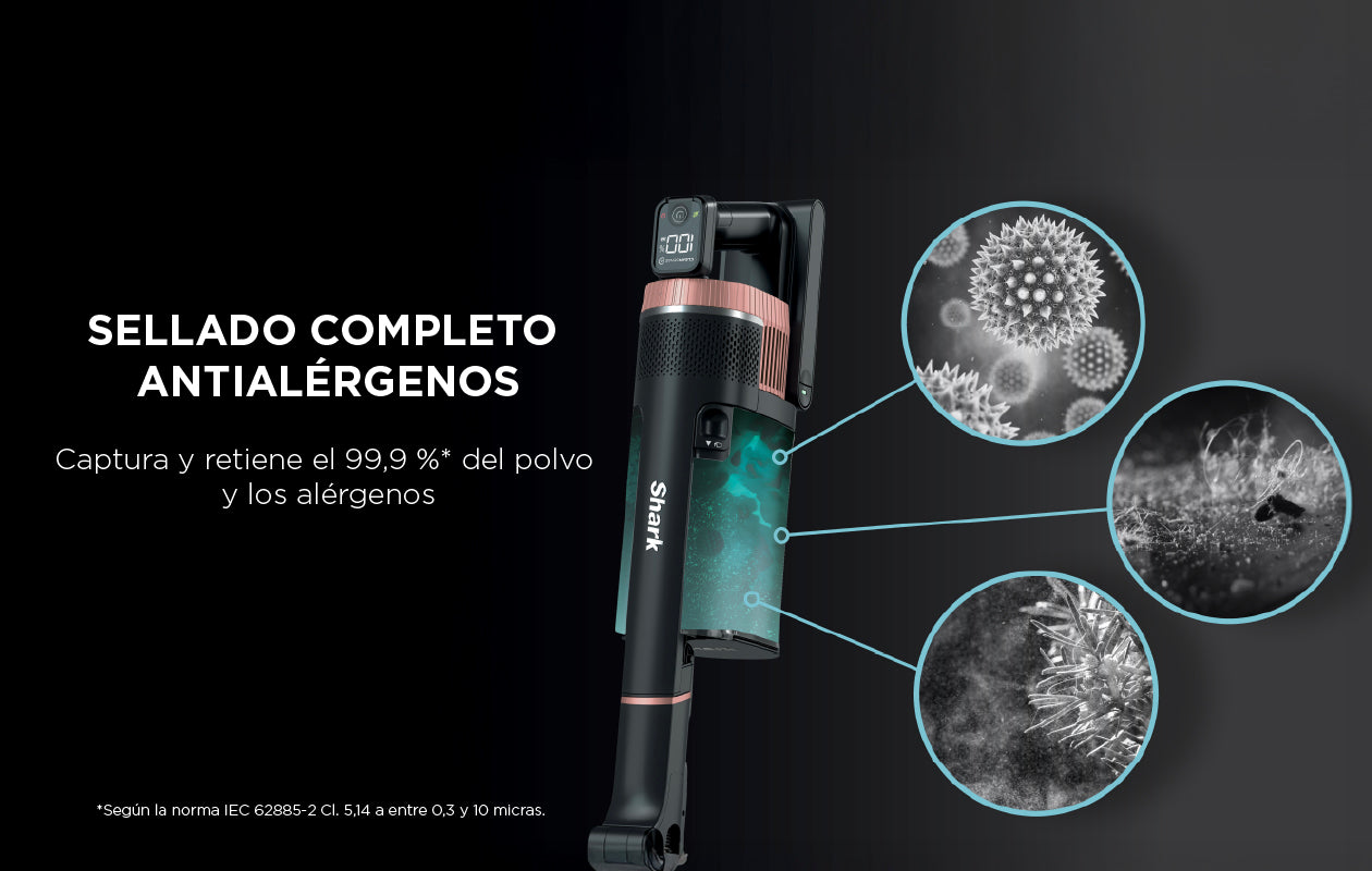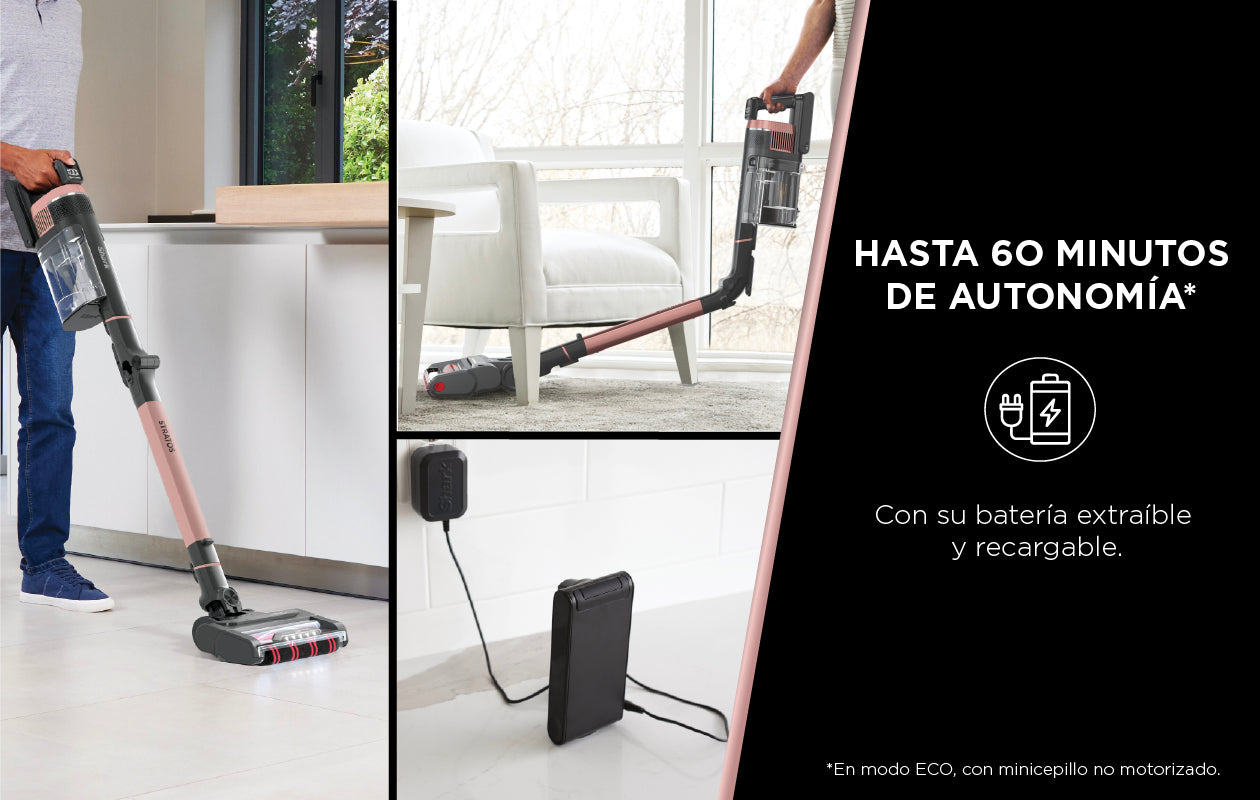 Conoce la nueva Aspiradora Shark Stratos modelo IZ400, una de las aspiradoras más potentes de Shark, con 309 W de potencia y tecnología Clean Sense IQ, que ajusta la succión automáticamente para aspirar hasta un 50 % más de suciedad. Ofrece hasta 60 minutos de autonomía, un depósito XL de 0,7 L, junto a distintos modos de funcionamiento para adaptarse a cada superficie de tu hogar.